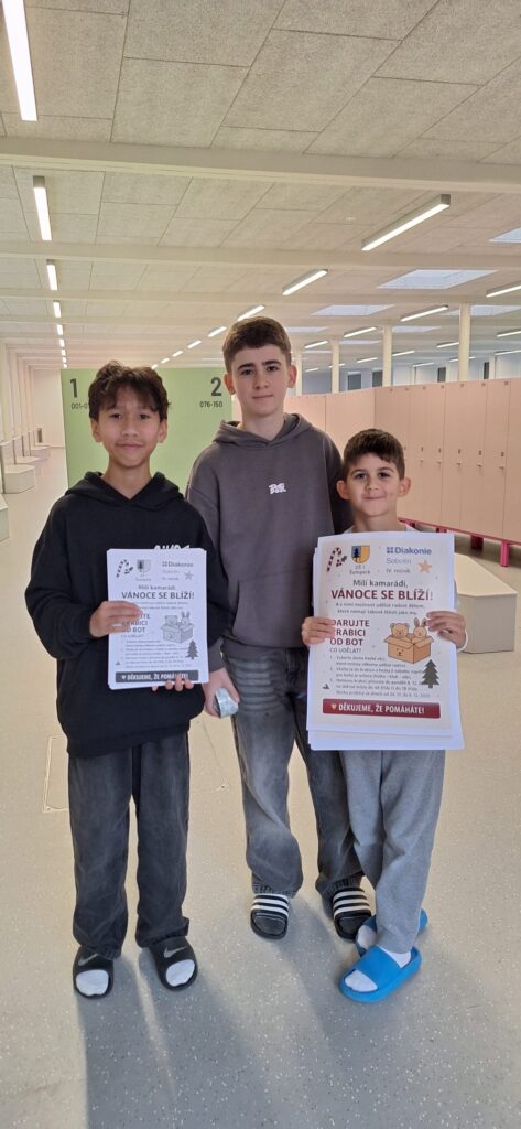 Na naší škole právě probíhá již čtvrtý ročník charitativní akce „Krabice od bot“, kterou každoročně s velkým nasazením a dobrým srdcem organizují bratři Rafael a Cristiano.