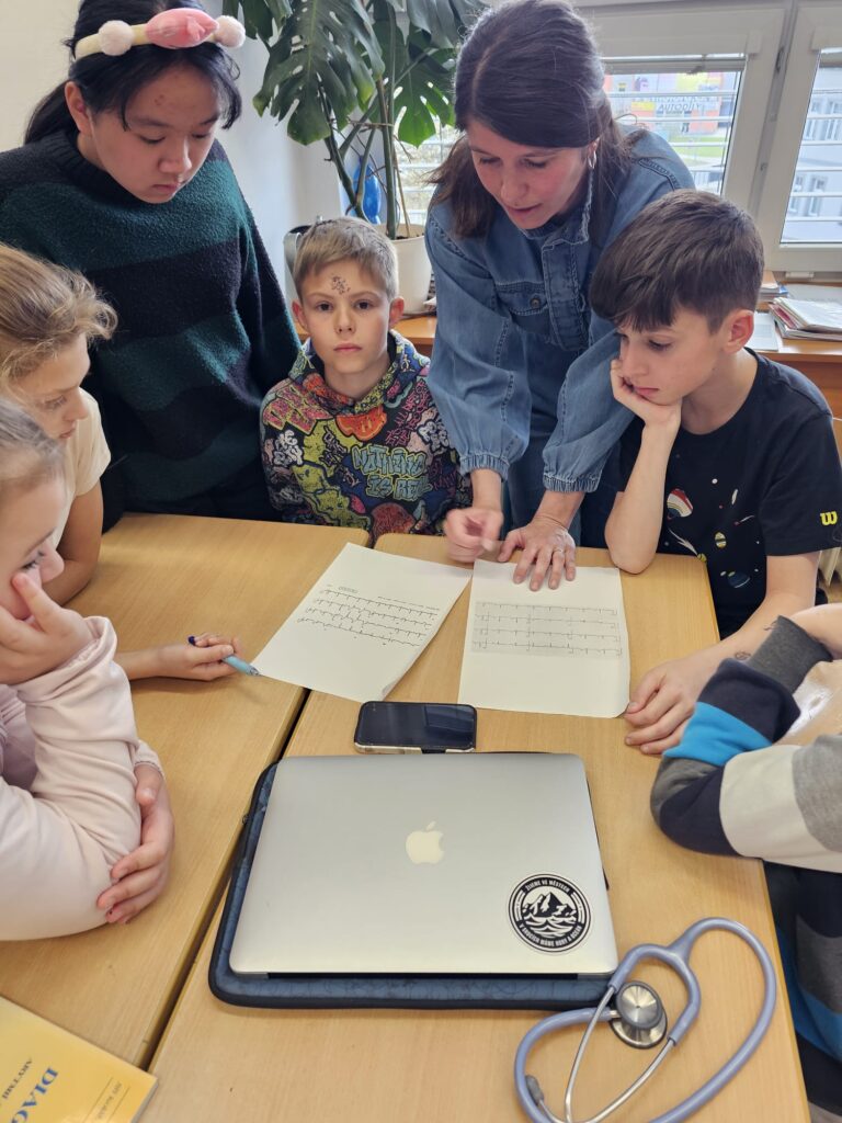 Žáci byli rozděleni do tří skupin. V první části se seznamovali s informacemi o onemocněních srdce a o různých typech úrazů. Druhá skupina pracovala s encyklopediemi a vyhledávala zajímavosti v textech. Třetí skupina si vyzkoušela resuscitaci a použití AED přístroje.