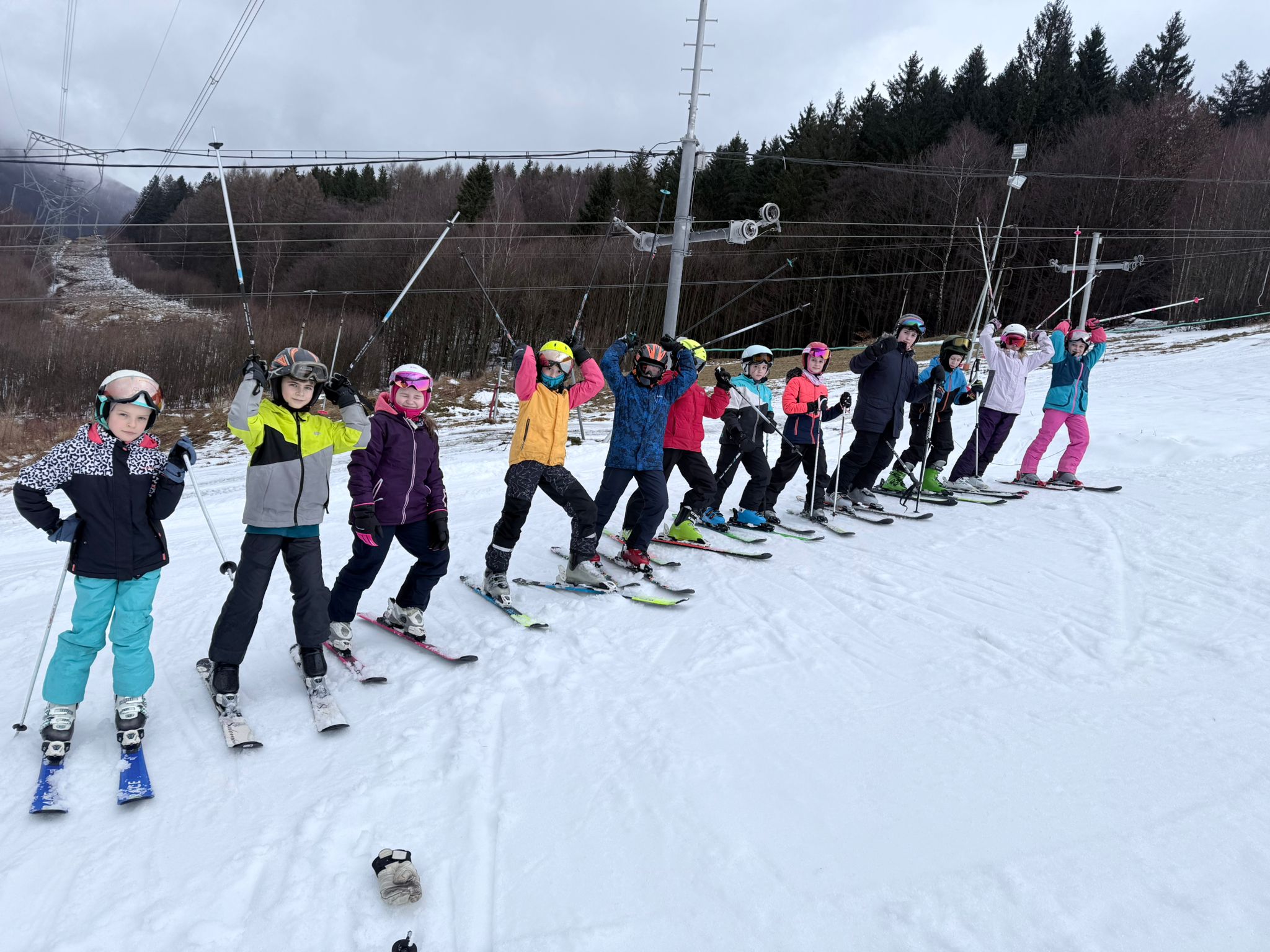 Počasí si s námi sice chvílemi pohrává – občas nás překvapí přeháňka, jindy mezi mraky vykoukne i sluníčko – dětem to ale vůbec nevadí. Každý den je vidět velký posun: žáci jsou odvážnější, jistější na svahu, lépe zvládají techniku a hlavně mají z lyžování opravdovou radost.