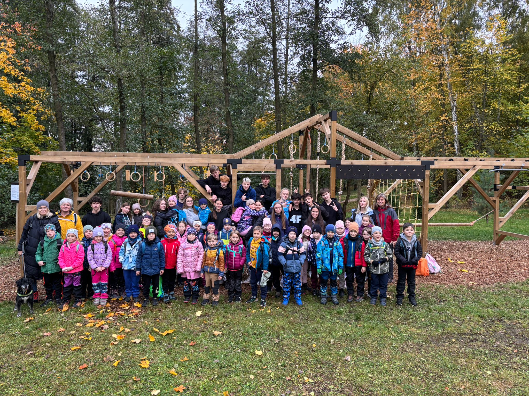 V úterý 22. října proběhlo společné dopoledne tříd 1.B, 1.C a 9.A v lesoparku Cihelna. Deváťáci pro mladší spolužáky připravili soutěže a úkoly, které prvňáčky dovedly až k ukrytému pokladu. Akce se nesla v přátelském duchu, posílila vzájemné vztahy mezi žáky a přinesla všem mnoho radosti i nových zážitků.