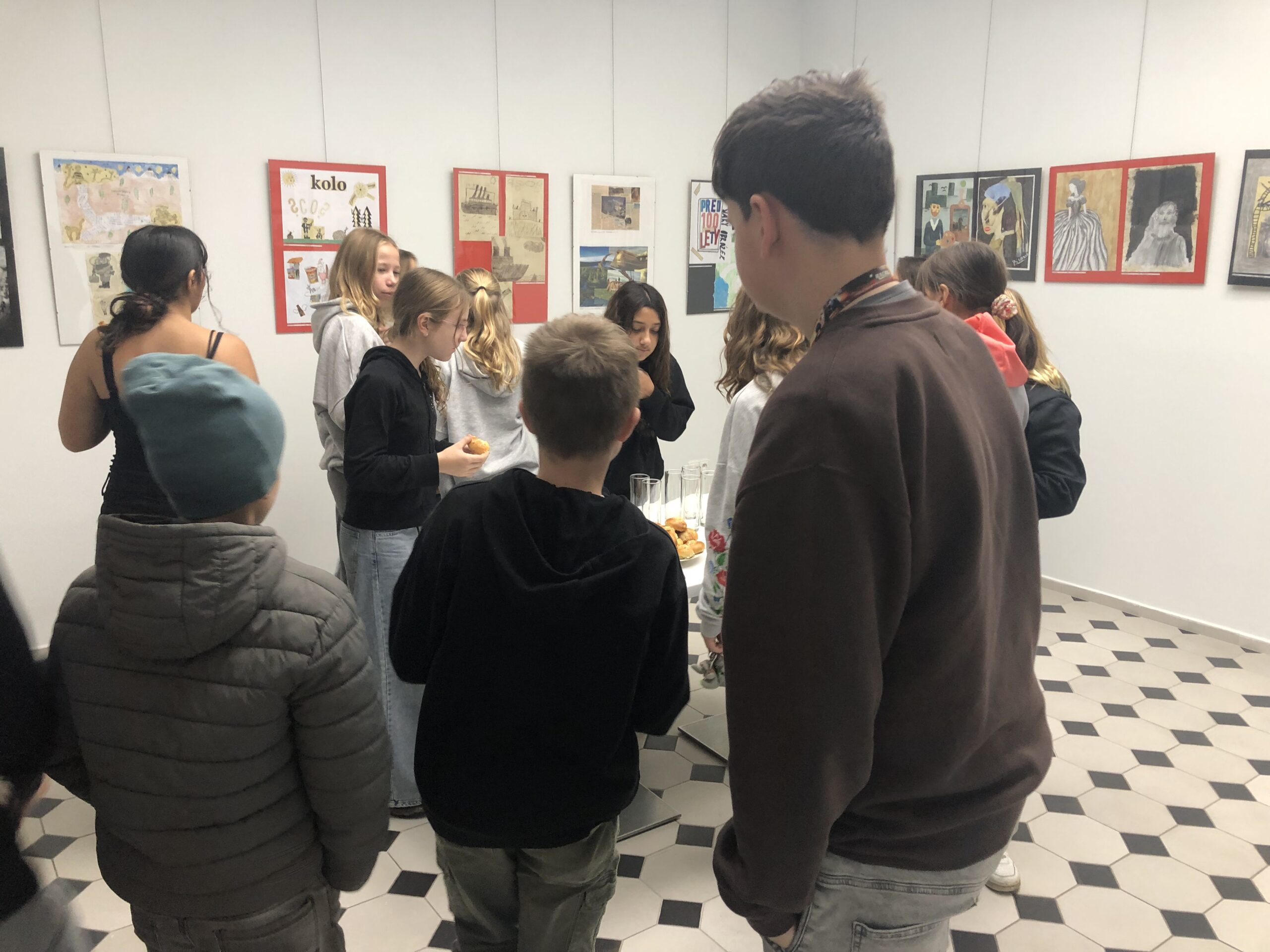 Třída 6.D na slavnostním zahájení výstavy dětských prací v rámci projektu „Město čte knihu“