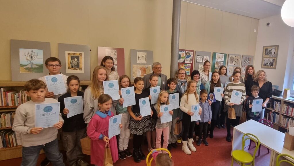 Předání cen vítězům proběhlo v sobotu 8.11. v Městské knihovně TGM. Diplomy předal významný host Jindřich Mann.